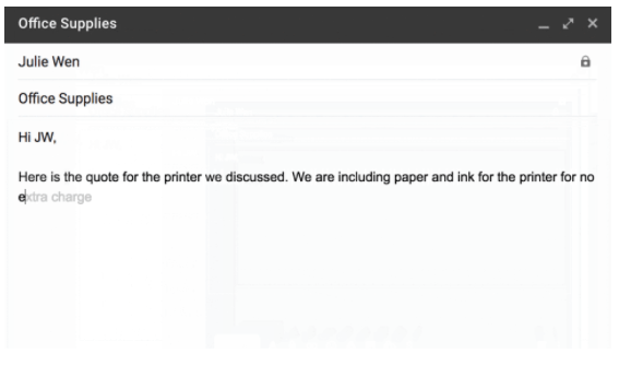 Suggested actions — like Smart Reply, Smart Compose, grammar suggestions, and nudges — help you stay on top of your work and take care of simple tasks, so you can be more efficient with your time.