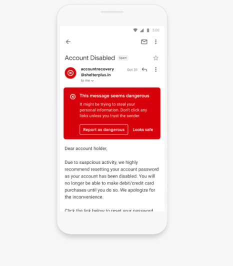 Gmail works hard to keep you safe. Our machine learning models block more than 99.9% of spam, phishing, and malware from reaching our users.